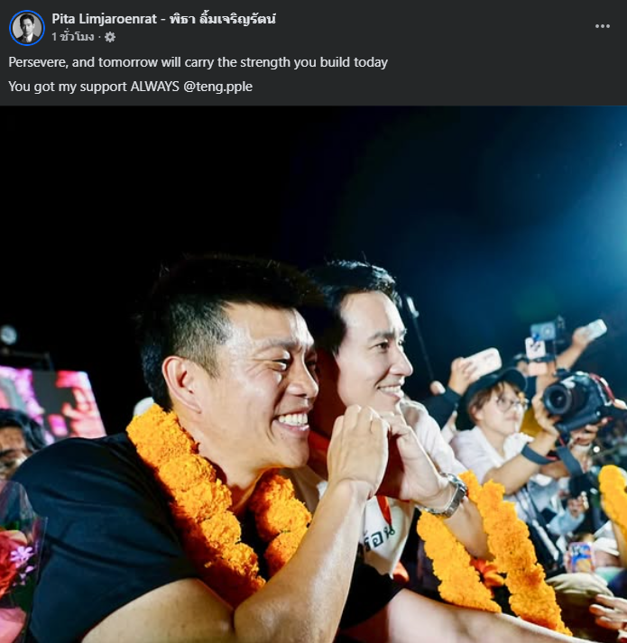 ข้อความจากนายพิธาถูกมองว่าเป็นการส่งแรงสนับสนุนจากผู้นำทางการเมืองรุ่นก่อน ท่ามกลางช่วงเวลาที่พรรคประชาชนกำลังเผชิญแรง
