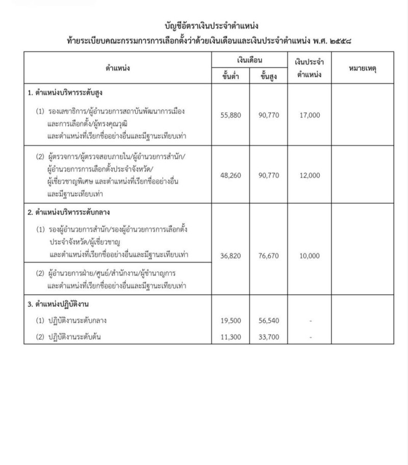 1. ผู้อำนวยการการเลือกตั้งประจำเขตเลือกตั้ง ค่าตอบแทน 25,000 บาทต่อเดือน