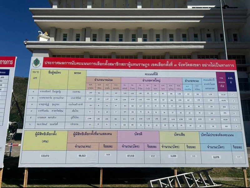 วันนี้ (10 ก.พ. 2569) นายทนายอาร์ม สุวรรณรักษา ผู้สมัคร ส.ส.สงขลา เขต 3 พรรคประชาธิปัตย์ ได้โพสต์ในเฟซบุ๊กส่วนตัวตั้งคำถามถึงจำนวนบัตรเลือกต้้งในพื้นที่ จ.สงขลา เขต 3 ที่จำนวนบัตรแบบแบ่งเขตมีไม่เท่ากับจำนวนบัตรแบบบัญชีรายชื่อ โดยหายไป 13,670 ใบ