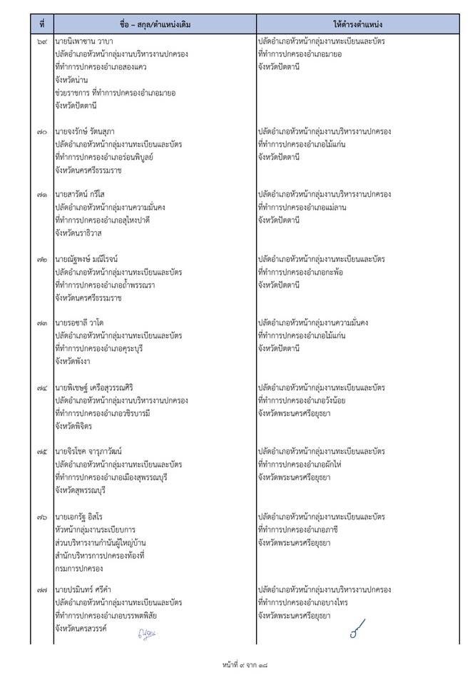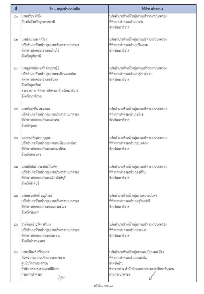 โดยมีตำแหน่งต่างๆ อาทิ ผู้อำนวยการส่วน หัวหน้ากลุ่มงาน ปลัดอำเภอ และ เสมียนตราจังหวัด