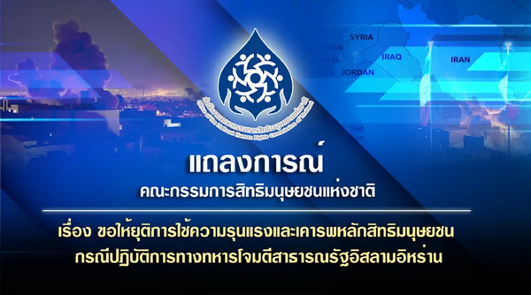 วันที่ 3 มีนาคม 2569 คณะกรรมการสิทธิมนุษยชนแห่งชาติ (กสม.) ออกแถลงการณ์ เรียกร้องให้ยุติการใช้ความรุนแรงและเคารพหลักสิทธิมนุษยชน กรณีปฏิบัติการทางทหารโจมตีสาธารณรัฐอิสลามอิหร่าน ท่ามกลางสถานการณ์ความขัดแย้งรุนแรงในภูมิภาคตะวันออกกลาง