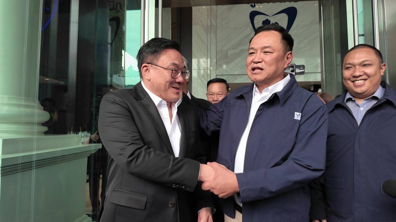วันนี้ (12 มี.ค. 69) เวลา 14:15 น. ที่พรรคภูมิใจไทย นายอนุทิน ชาญวีรกูล หัวหน้าพรรคภูมิใจไทย พร้อมคณะ มารอต้อนรับแกนนำของพรรคเพื่อไทย นำโดย นายจุลพันธ์ อมรวิวัฒน์ หัวหน้าพรรค พร้อมด้วย นายชูศักดิ์ ศิรินิล และนางสาวสุดาวรรณ หวังศุภกิจโกศล สส.แบบบัญชีรายชื่อ พรรคเพื่อไทย ที่เดินทางมายื่นรายชื่อผู้ที่เสนอตัวดำรงตำแหน่งรองประธานสภาคนที่ 2 และคาดว่าจะมีการพูดคุยเรื่องรายชื่อของรัฐมนตรีในสัดส่วนโควตาของพรรคเพื่อไทยให้กับพรรคภูมิใจไทยในฐานะแกนนำจัดตั้งรัฐบาล