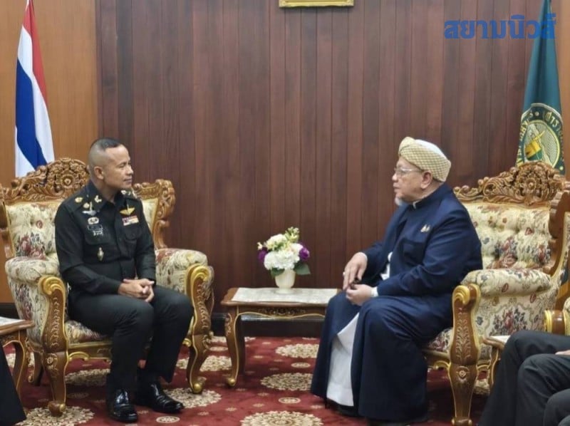 วันที่ 23 เมษายน 2569 เวลา 10.30 น. ณ ห้องรับรองสำนักจุฬาราชมนตรี นายอรุณ บุญชม จุฬาราชมนตรี ให้การต้อนรับ พลโท นรธิป โพยนอก แม่ทัพภาคที่ 4 และทำหน้าที่ ผู้อำนวยการรักษาความมั่นคงภายในภาค 4 (ผอ.รมน.ภาค 4) ในโอกาสเข้าเยี่ยมคารวะและหารือข้อราชการ พร้อมแลกเปลี่ยนความคิดเห็น ตลอดจนรับฟังข้อเสนอแนะแนวทางการดำเนินงานด้านกิจการศาสนาอิสลาม
