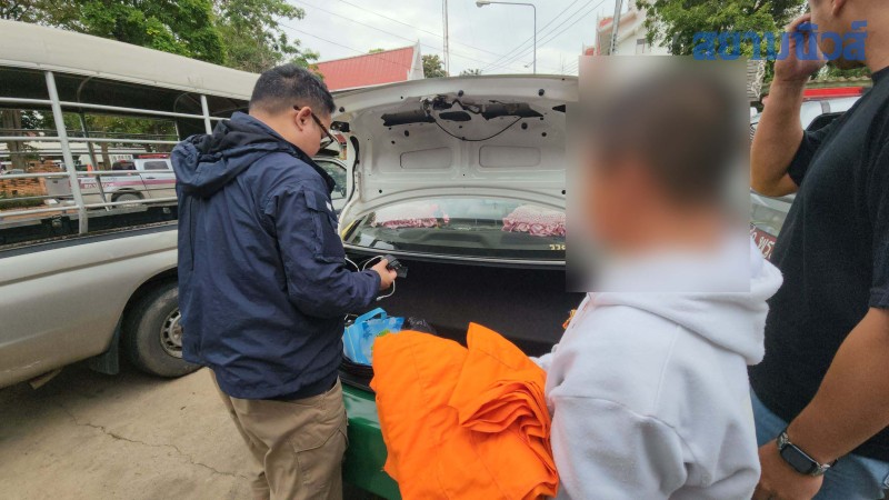จากการตรวจค้นรถยนต์แท็กซี่ ที่ ก่อเหตุชิงมาจากพื้นที่ของ จ.สมุทรปราการ เจ้าหน้าที่ตำรวจตามตรวจยึดมาได้ พบข้าวของเครื่องใช้จำนวนมาก ซุกในรถ พร้อมกับจีวรพระสงฆ์ ซองผ้าป่า เอกสารเชิญชวนร่วมทำบุญต่างๆทั้งการทำบุญสร้างพระ ร่วมทำบุญบวชพระ พร้อมกับ หมายเลขบัญชีธนาคาร ในการโอนเงินร่วมทำบุญด้วย