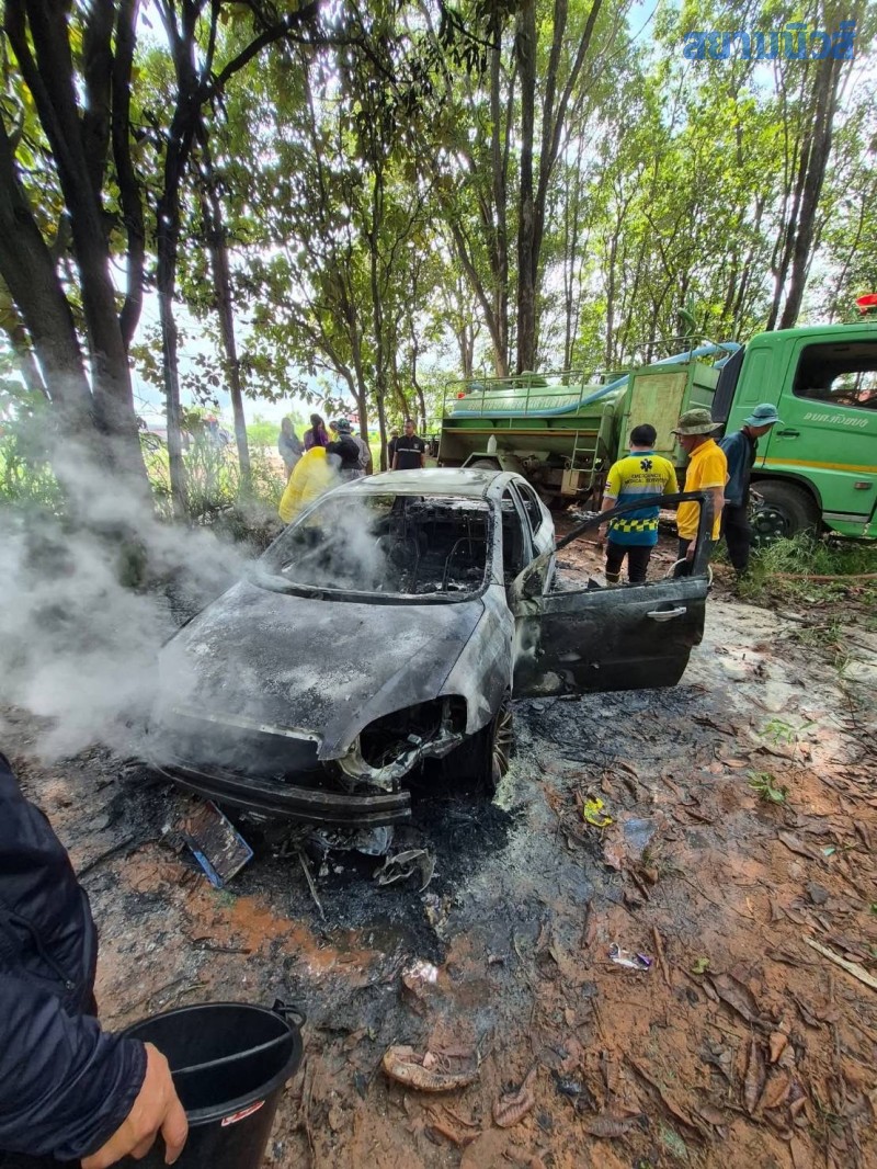 ตรวจสอบพบรถเก๋งเชฟสี ดำ ทะเบียน งน 9562 นครราชสีมา ถูกไฟไหม้ทั้งคัน เจ้าหน้าที่เร่งให้การช่วยเหลือดับไฟ ใช้เวลากว่า 30 นาที จึงสามารถควบคุมเพลิงไว้ได้ ทราบภายหลังมีผู้เสียชีวิตภายในรถหนึ่งราย ด.ช. ก. (นามสมมุติ) อายุ 3 ปี อยู่ระหว่างรอตำรวจพิสูจน์หลักฐานและทีมแพทย์ เข้าตรวจสอบที่เกิดเหตุเพื่อยืนยันการเสียชีวิต