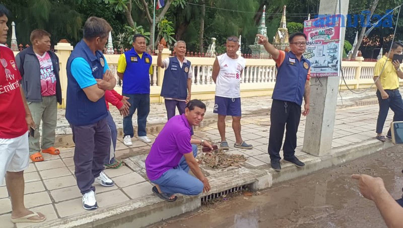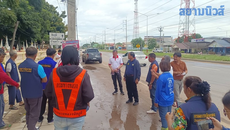 จากนั้น ก็ได้พากันลงพื้นที่ไปตรวจสอบ ระบบวางท่อระบายน้ำ และทางเดินเท้าที่ทรุดตัว ตามบริเวณหน้าบ้านของชาวบ้านที่ถูกน้ำท่วมเสียหายในครั้งนี้พร้อมให้ชาวบ้านที่ได้รับผลกระทบ ทำหนังสือส่งให้กรมทางพิจารณา ในการแก้ไขเบื้องต้นไปก่อนพร้อมกับเสนอทางอำเภอให้มีการเยียวยาชาวบ้านที่ถูกน้ำท่วม ตามระเบียบที่จะช่วยได้ต่อไป ในสวนการแก้ไขถนนนั้นยังอยู่ในการรับประกันการก่อสร้างและออกแบบมาทางแขวงยังจะเข้าไปแก้ไขไม่ได้จึงจะต้องรอให้ผ่านระเบียบดังกล่าวไปก่อน