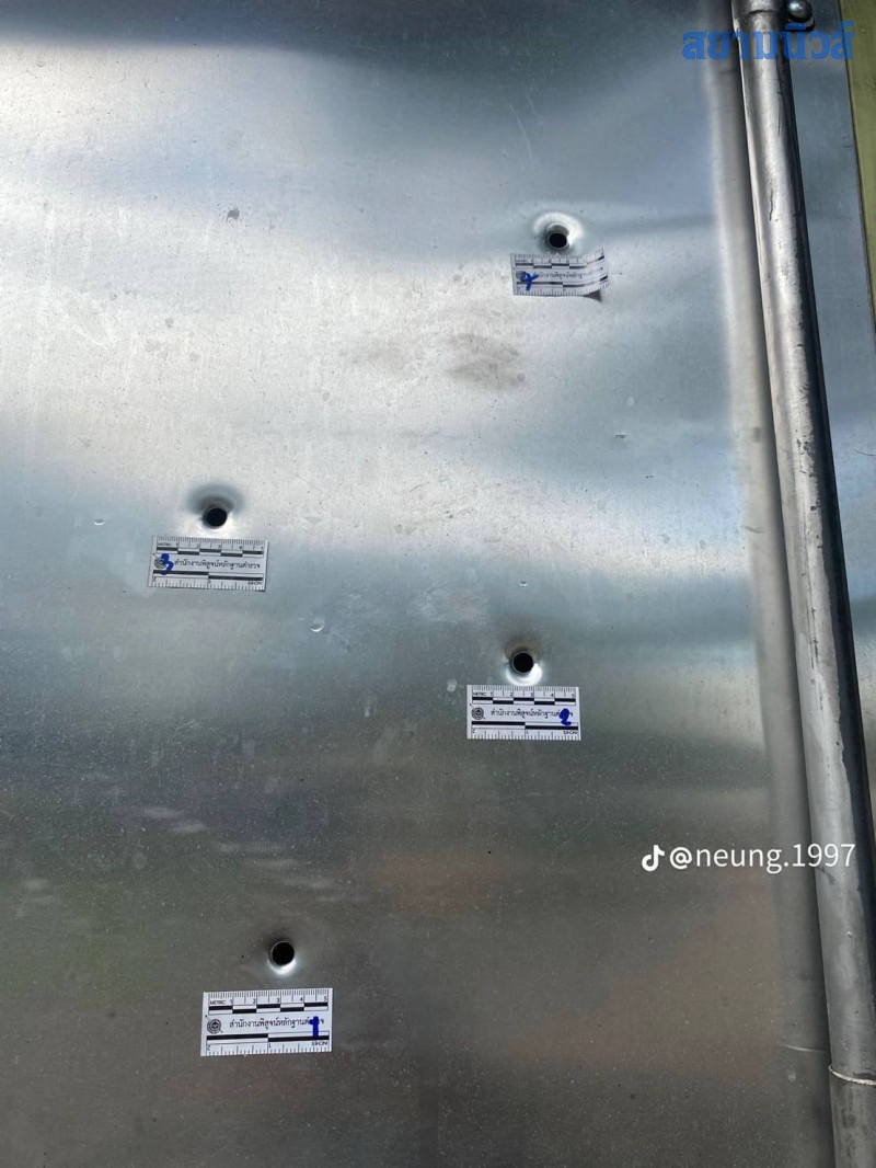 อำเภอหนองกี่หนุ่มขับรถกระบะตู้ทึบส่งพัสดุ ขับหนีตายโร่แจ้งตำรวจ ถูกคนในเก๋ง ขับประกบยิงหลายสิบนัด พบถูกยิง 15 นัด คนปลอดภัย เจ้าตัวเผย ขับรถแซงกันไปมาบนท้องถนนลักษณะแย่งเลนถนนช่องขวาสุด คาดคนขับเก๋งไม่พอใจก่อเหตุกราดยิง