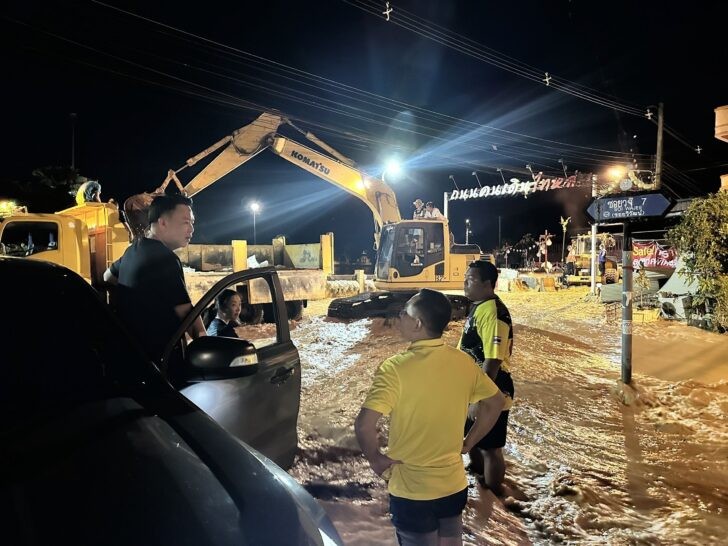 นายภาคภูมิ ภูมี นายอำเภอหล่มสัก เปิดเผยว่า ทีมกู้สถานการณ์ต้องใช้เครื่องจักรและอุปกรณ์ต่าง ๆ เพื่อวางแนวป้องกันน้ำตลอดทั้งคืน โดยมีอุปสรรคจากแรงดันน้ำที่ทำให้แนวแบริเออร์และบิ๊กแบ๊กไม่สามารถต้านแรงน้ำได้ จึงต้องใช้ตอม่อเสาไฟฟ้าเสริมเป็นแนวต้านเพิ่มเติม จนสามารถชะลอน้ำได้สำเร็จในช่วงกลางดึก