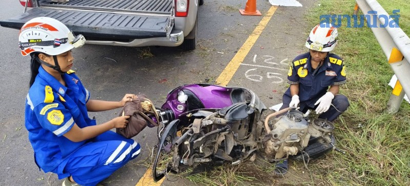 วันที่ 25 ก.ย. 2568 พ.ต.ท.กรณ์พงษ์ มงคลธนสุพัฒน์ สารวัตร (สอบสวน) สภ.นางรอง อ.นางรอง จ.บุรีรัมย์ ได้รับแจ้งมีอุบัติเหตุรถกระบะชนรถจักรยานยนต์ บริเวณถนนสาย 24 โชคชัย-เดชอุดม ขาเข้าตัว อ.นางรอง ก่อนถึงวัดขุนก้องประมาณ 800 เมตร หลังรับแจ้ง จึงรุดไปตรวจสอบ พร้อมกับหน่วยกู้ภัยสยามรวมใจปู่อินทร์