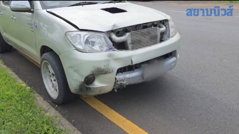 ที่เกิดเหตุพบรถกระบะยี่ห้อโตโยต้า แคป สีบรอนซ์ทอง ทะเบียน กต 2760 บุรีรัมย์ จอดอยู่เลนขวา สภาพด้านหน้ารถได้รับความเสียหาย ร่องกลางถนนพบรถจักรยายนต์ยี่ห้อฮอนด้า สภาพพังยับเยิน และพบร่างนายสมเจต (สงวนนามสกุล) อายุ 31 ปี ชาว ต.ถนนหัก อ.นางรอง จ.บุรีรัมย์ ในสภาพร่างขาดเป็นสองท่อน