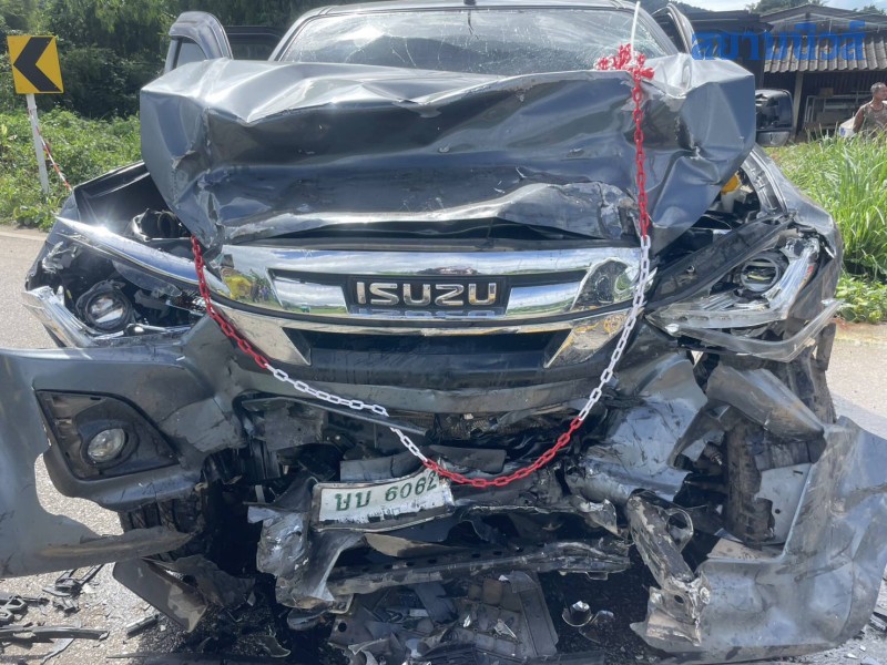 ที่เกิดเหตุ พบรถกระบะ อีซูซุ สีดำ ทะเบียน บบ-6062 พย. สภาพด้านหน้าพังยับเยินทั้งคัน และรถกระบะ ฟอร์ด สีขาว ทะเบียน 6ขว-8185 กทม. สภาพด้านหน้าพังเสียหายเช่นกัน จากการตรวจสอบพบผู้บาดเจ็บ 2 ราย ได้แก่ชาย อายุ 41 ปี คนขับรถฟอร์ด มีอาการซึมและปวดหน้าอก และหญิง อายุ 54 ปี ผู้โดยสารรถอีซูซุ มีบาดแผลฉีกขาดบริเวณศีรษะ และปวดไหล่ซ้าย