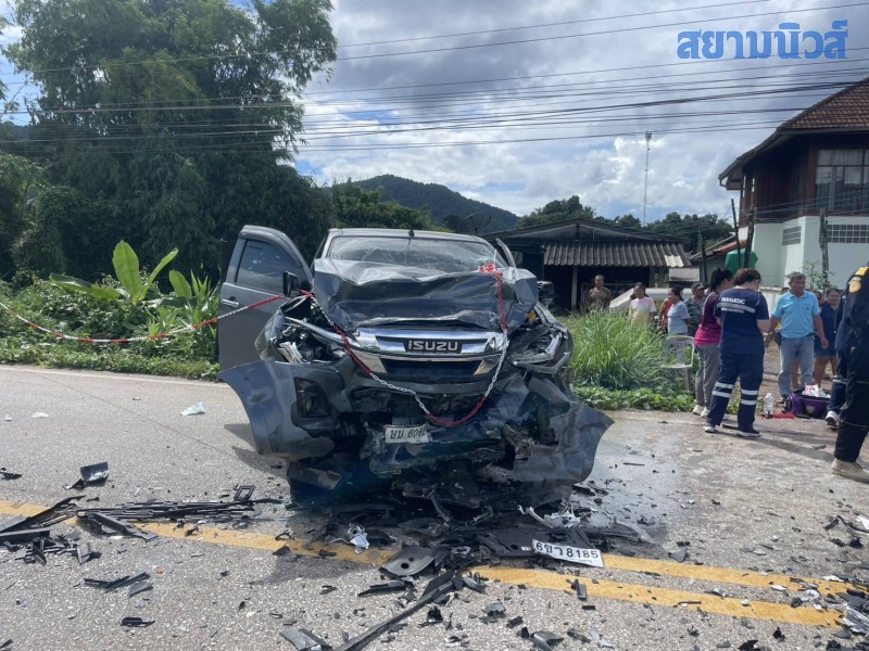 เมื่อวันที่ 1 ตุลาคม 2568 เจ้าหน้าที่ตำรวจ สภ.เชียงคำ จ.พะเยา ได้รับแจ้งอุบัติเหตุรถกระบะชนประสานงากัน บริเวณถนนบ้านถ้ำกาญจนา หมู่ 8 ต.แม่ลาว อ.เชียงคำ หลังรับแจ้ง จึงรุดไปตรวจสอบ พร้อมเจ้าหน้าที่กู้ภัยมูลนิธิสยามรวมใจพะเยา สำนักงานใหญ่เชียงคำ