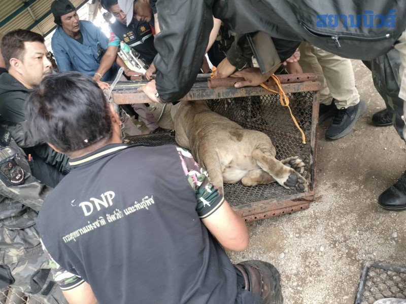 สำหรับปัญหาการขนย้ายสิงโตเพศเมีย ทางนายอรรถพล เจริญชันษา อธิบดีกรมอุทยานแห่งชาติสัตว์ป่า และพันธุ์พืช นายชุติเดช กมนณชนุตม์ ผู้อำนวยการสำนักบริหารพื้นที่อนุรักษ์ที่ 3 (บ้านโป่ง) สั่งการให้นายมานะ เพิ่มพูล ผู้อำนวยการส่วนอนุรักษ์สัตว์ป่า นายประวุธ เปรมปรีดิ์ หัวหน้าเขตรักษาพันธุ์สลักพระ นายปรารภ ปฐมเพทาย หัวหน้าเขตห้ามล่าสัตว์ป่าอุทยานสมเด็จพระศรีนครินทร์กาญจนบุรี เจ้าที่สายตรวจปราบปรามการกระทำผิดกฎหมายว่าด้วยสัตว์ป่าในท้องที่จังหวัดกาญจนบุรี พร้อมด้วย คณะเจ้าหน้าที่สำนักบริหารพื้นที่อนุรักษ์ที่ 3 (บ้านโป่ง)และสัตวแพทย์สังกัดสำนักบริหารพื้นที่อนุรักษ์ที่ 3 เขาประทับช้าง ร่วมกับเจ้าหน้าที่ฝ่ายปกครองอำเภอบ่อพลอย กำนัน ผู้ใหญ่บ้าน เดินทางไปที่บ้านพักของนายปริญญา เพื่อตรวจสอบหาสาเหตุว่าสิงโตตัวดังกล่าวนั้นหลุดออกมาได้อย่างไร