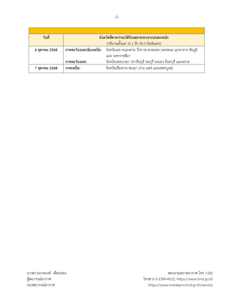 ประกาศ ณ วันที่ 6 ตุลาคม พ.ศ. 2568 เวลา 23.00 น. กรมอุตุนิยมวิทยาจะออกประกาศฉบับต่อไปในวันที่ 7 ตุลาคม พ.ศ. 2568 เวลา 05.00 น.