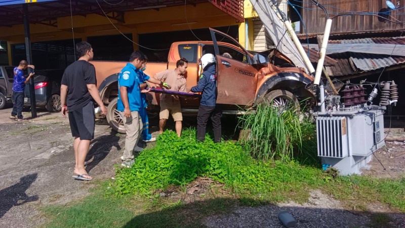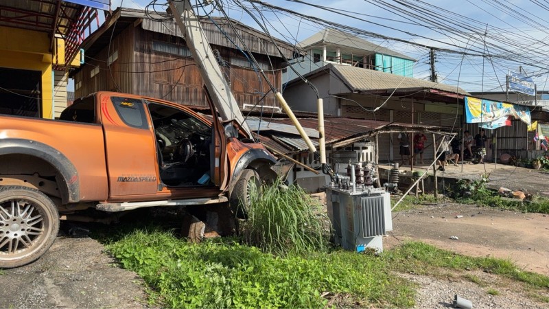จากนั้นรถไถลไปชนเสาไฟฟ้าแรงสูง จนหม้อแปลงไฟตกลงมาจากเสาไฟฟ้า ส่วนรถกระบะหน้ารถพังยับ พบนายสุมิตร พาสี อายุ 62 ปี คนขับ และนายอมรรัตน์ สุวรรณไกรศร อายุ 60 ปี ผู้โดยสาร ทั้งสองคนไม่ทราบที่อยู่ ได้รับบาดเจ็บหนัก กู้ชีพปฐมพยาบาลนำส่ง รพ.เลย
