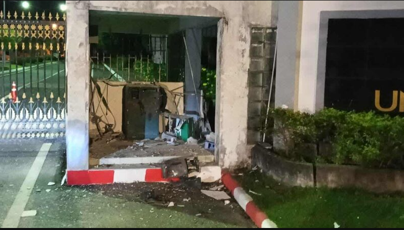 ต่อมาได้เกิด เสียงระเบิดดังสนั่น ส่งผลให้ ตู้ ATM ได้รับความเสียหายบางส่วน โครงสร้างปูนและกระจกบริเวณโดยรอบแตกกระจาย แต่โชคดีที่ ไม่มีผู้ใดได้รับบาดเจ็บหรือเสียชีวิต จากเหตุการณ์ดังกล่าว