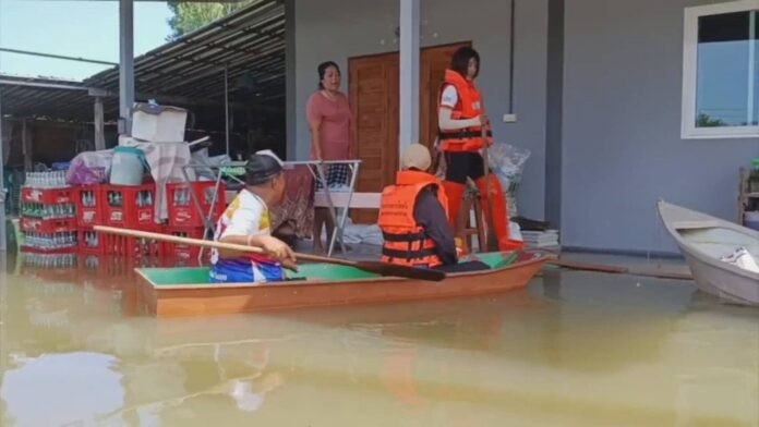 นายอำพร ใจบุญ ผู้ช่วยผู้ใหญ่บ้านหมู่ 4 ระบุว่า ชาวบ้านต้องใช้รถไถและรถอีโก้งเข้าออกหมู่บ้าน ค่าบริการรอบละ 20 บาท เนื่องจากน้ำท่วมสูงเกินเข่าและบางจุดสูงถึงระดับอก น้ำใกล้เท่าปี 54 ทำให้ชาวบ้านวิตกกังวลหากมีมวลน้ำเพิ่มอีก