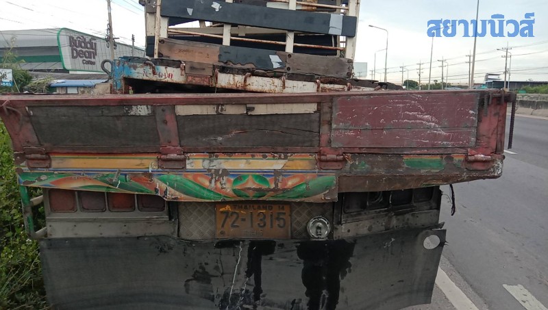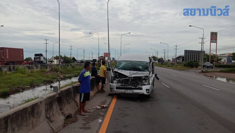 ที่เกิดเหตุ พบรถตู้ ยี่ห้อ โตโยต้า สีบรอน หมายเลขทะเบียน ฮอ-8341 กรุงเทพมหานคร จอดอยู่ช่องทางขวาสุดสภาพด้านหน้ารถได้รับความเสียหายกระจกแตก เบาะในรถได้รับความเสียหาย มีข้าวของตกกระจายอยูที่พื้นรถ เจ้าหน้าที่พบผู้บาดเจ็บจำนวน 10 ราย โดยส่วนใหญ่มีอาการถลอกตามร่างกา ยเจ็บที่ขาและศรีษะ เนื่องจากแรกกระแทกของรถ เจ้าหน้าที่จึงได้ปฐมพยาบาลในที่เกิดเหตุเบื้องต้น ก่อนรีบนำส่งโรงพยาบาลมหาชัย1 จำนวน 8 ราย และโรงพยาบาลเจษฎาฯ จำนวน 2 ราย และห่างออกไปพบรถบรรทุก 10 ล้อ ฮีโน่ สีขาว หมายเลขทะเบียน 72 -1315 สระบุรี จอดอยู่ริมทางช่องซ้ายสุดสภาพด้านท้ายรถมีร่องรอยยุบเนื่องจากการถูกชน