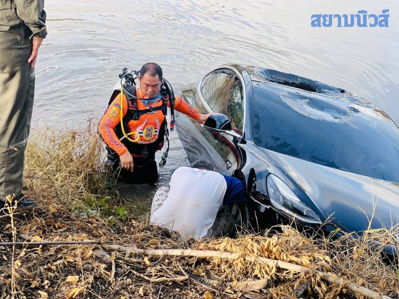 โดยมีลูกชายได้เดินทางมาที่เกิดเหตุบอกขอให้ทางเจ้าหน้าที่กู้ภัยช่วยชีวิตพ่อจะให้มอบเงินให้ล้านบาท จนท.ได้ทำการ CPR ปั้มหัวใจ แต่ไม่สามารถยื้อชีวิตไว้ได้ จากนั้น ได้ทำการดึงรถคันดังกล่าวขึ้นมาจากน้ำ โดยพบว่าเป็นรถเก๋งยี่ห้อเทสล่า สีดำ หมายเลขทะเบียน 3กก 7575 กรุงเทพมหานคร โดยทราบชื่อผู้เสียชีวิตต่อมา คือ นายวิทย์ธวัช (สงวนนามสกุล) อายุ 55 ปี