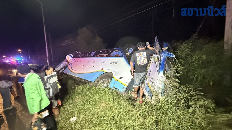เมื่อเวลาประมาณ 20.00 น. วันที่ 20 ต.ค. 2568 เจ้าหน้าที่ตำรวจสภ. โนนไทย ได้รับแจ้งอุบัติเหตุรถทัวร์บริษัทนครชัยขนส่ง เส้นทางนครราชสีมา - ชัยภูมิ พลิกคว่ำตะแคงลงข้างทาง บริเวณถนนสุรนารายณ์ หน้าอบต. สายออ ต.สายออ อ.โนนไทย จ.นครราชสีมา หลังได้รับแจ้งรุดตรวจสอบ พร้อมด้วยเจ้าที่กู้ภัยฮุก31 นครราชสีมา - เจ้าหน้าที่ฮุก31 จุดโนนไทย และอาสากู้ภัยใกล้เคียง