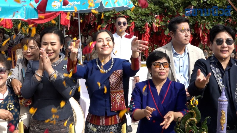 เมื่อวันที่ 23 ต.ค. 2568 ที่วัดรอยพระพุทธบาทภูมโนรมย์ ต.นาสีนวน อ.เมือง จ.มุกดาหาร พระวิฑูรวชิรโมลี (มงคล มงฺคลคุโณ) เจ้าอาวาสวัดรอยพระพุทธบาทภูมโนรมย์ และรองเจ้าคณะจังหวัดมุกดาหาร นำศิษยานุศิษย์ ศิลปิน ดารา นักแสดง อาทิ นางเอกสาว ราณี แคมเปน หรือ เบลล่า ราณี อัครเดช ยอดจำปา หรือก้อง ห้วยไร่ ควงคู่มากับ ขนิษฐา เบ้าหล่อเพชร ภรรยา และคณะ ร่วมกันประกอบพิธีทำบุญทอดผ้าป่าสามัคคี ประจำปี 2568 เพื่อสมทบทุนและปรับภูมิทัศน์รอบองค์ พญาศรีมุกดามหามุนีนีลปาลนาคราช (ลานพญานาค)