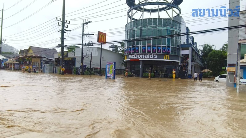 เมื่อวันที่ 22 ต.ค. 68 ผู้สื่อข่าวรายงาน ที่บ้านบางหาโอน เขาหลัก หมู่ 7 ต.คึกคัก อ.ตะกั่วป่า จ..พังงา เกิดเหตุการณ์นักท่องเที่ยวทั้งชาวไทยและชาวต่างชาติหลายร้อยคนที่กำลังพักผ่อน ดื่มกิน สังสรรค์ ช๊อปปิ้ง จู่ๆต้องตกใจแตกตื่นเนื่องจากมีน้ำป่าจากเทือกเขาหลักไหลทะลักเข้าท่วมกลางแหล่งท่องเที่ยวขณะนักท่องเที่ยวจำนวนมากไม่ทราบเรท่องที่เกิดขึ้นนักพักผ่อนทานอาหาร ช็อปปิ้ง โดยช่วงแรกน้ำได้เริ่มไหลจากเทือกเขาหลักมาตามลำคลองที่ไหลลงสู่ทะเล แต่ปริมาณน้ำเริ่มมีสีแดงและเอ่อล้นขึ้นมาจากลำคลองจำนวนมากจนไหลเข้าทะลักเข้าท่วมแหล่งช็อปปิ้งเขาหลักเซ็นเตอร์