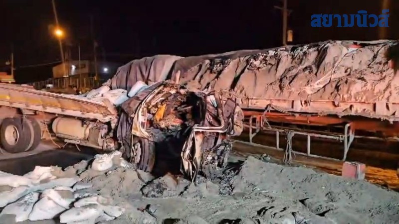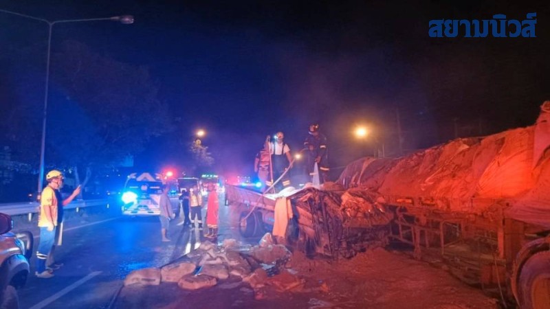 จากการสอบถามนายไก่ (นามสมมติ เนื่องจากเจ้าตัวไม่ประสงค์ให้ชื่อ) คนขับรถบรรทุกเทรนเลอร์18 ล้อ ตนเองมารับปูนที่บริษัท ทีพีไอ.จำกัด เพื่อจะไปส่งที่ จ.พระนครศรีอยุธยา เมื่อมาถึงที่เกิดเหตุ รถตนเองมีอาการคล้ายเบรกล็อค จึงทำการจอดริมถนนข้างทาง ตนเองจึงเดินลงไปตรวจสอบรถ ไม่ถึง 5 นาที ก็ได้ยินเสียงเหมือนมีอะไรมาชน พบว่า มีรถ 6 ล้อมาชนด้านท้ายของรถตนเองมีควันไฟเกิดขึ้น จึงได้แจ้ง เจ้าหน้าที่ตำรวจ และกู้ภัยฯ มาช่วย จนมาทราบว่ามีคนขับรถบรรทุกหกล้อเสียชีวิตติดภายใน