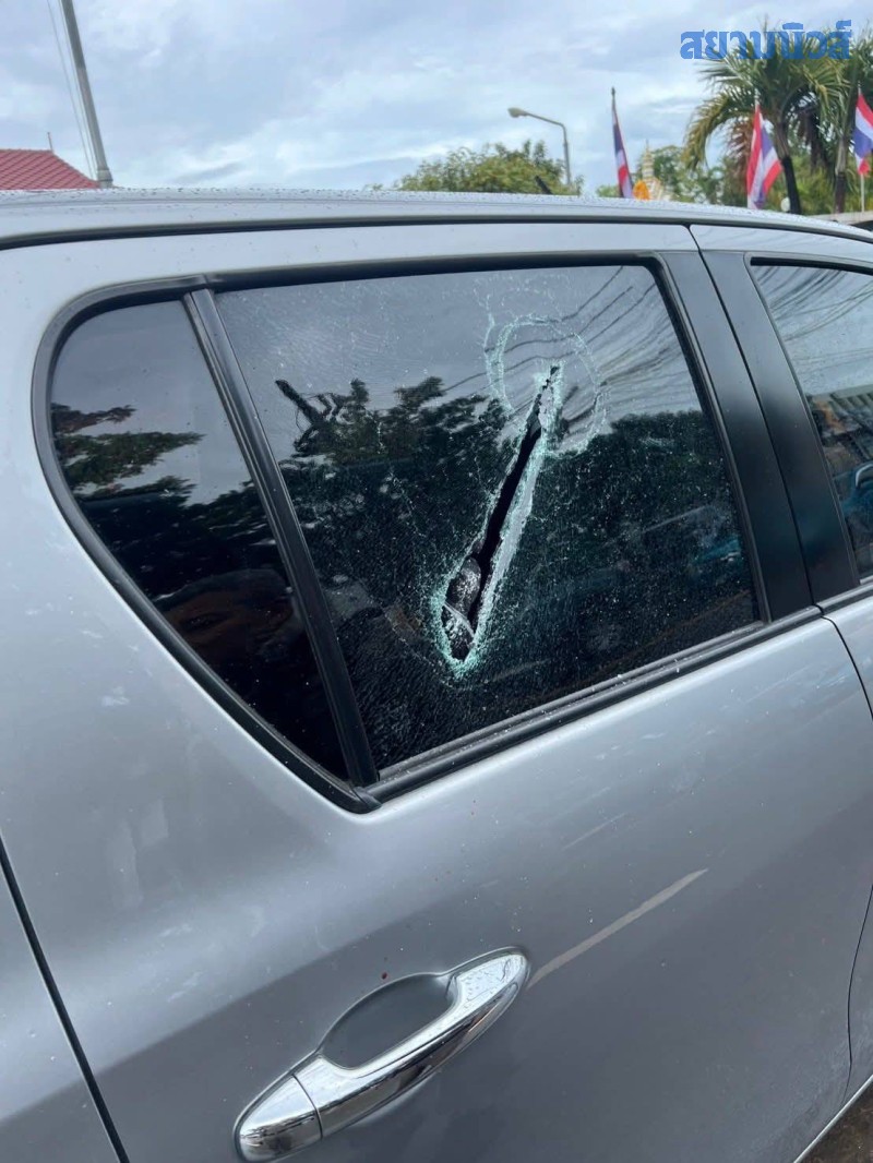 ที่เกิดเหตุอยู่บริเวณสี่แยกไฟแดง พบรถรถกระบะยี่ห้อโตโยต้า ไฮลักซ์รีโว่ สีบรอนด์เงิน ทะเบียน 4 กฬ 8311 กรุงเทพมหานครจอดเฉี่ยวชนอยู่กับรถยี่ห้อไฮเจ็ต สีแดง ทะเบียนป้ายเหลือง พค 113 ภูเก็ต (รถรับจ้างสี่ล้อเล็ก) โดยรถเอสยูวีได้รับความเสียหายที่บริเวณกระจกด้านคนนั่งหลังคนขับถูกของมีคมฟันแตกเป็นทางยาว ส่วนบริเวณด้านหน้ารถฝั่งขวาได้รับความเสียหาย ขณะที่รถรับจ้างสี่เล็กได้รับความเสียหายบริเวณด้านหน้ารถฝั่งซ้าย ซึ่งเกิดจากการเฉี่ยวชน