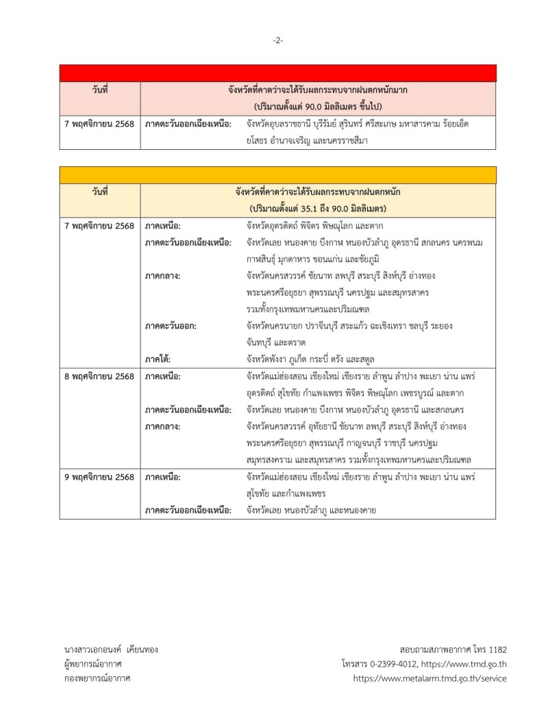 กรมอุตุนิยมวิทยาจะออกประกาศฉบับต่อไปในวันที่ 5 พฤศจิกายน พ.ศ. 2568 เวลา 23.00 น.