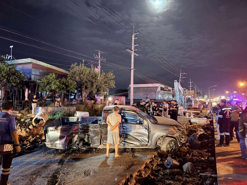 จากการสอบสวนและตรวจสอบกล้องวงจรปิด พบว่า รถกระบะคันเกิดเหตุวิ่งมาด้วยความเร็ว ก่อนเสียหลักเฉี่ยวชนกับรถกระบะอีกคัน แล้วพุ่งชนรถจักรยานยนต์ และรถกระบะที่จอดข้างทาง รวมถึงคนงานที่กำลังทำถนน เบื้องต้นทราบว่ากระบะอีซูซุแข่งกันมาก่อนเฉี่ยวชนกัน แล้วเสียหลักไปชนจยย.และรถกระบะที่จอดข้างทาง รวมถึงคนงานทำถนน ส่งผลให้มีผู้ได้รับบาดเจ็บและเสียชีวิตดังกล่าว อย่างไรก็ตาม เจ้าหน้าที่จะทำการสอบปากคำผู้ที่เกี่ยวข้องทั้งหมด ก่อนแจ้งข้อหา และดำเนินคดีกับผู้ที่ขับขี่รถกระบะคันก่อเหตุต่อไป