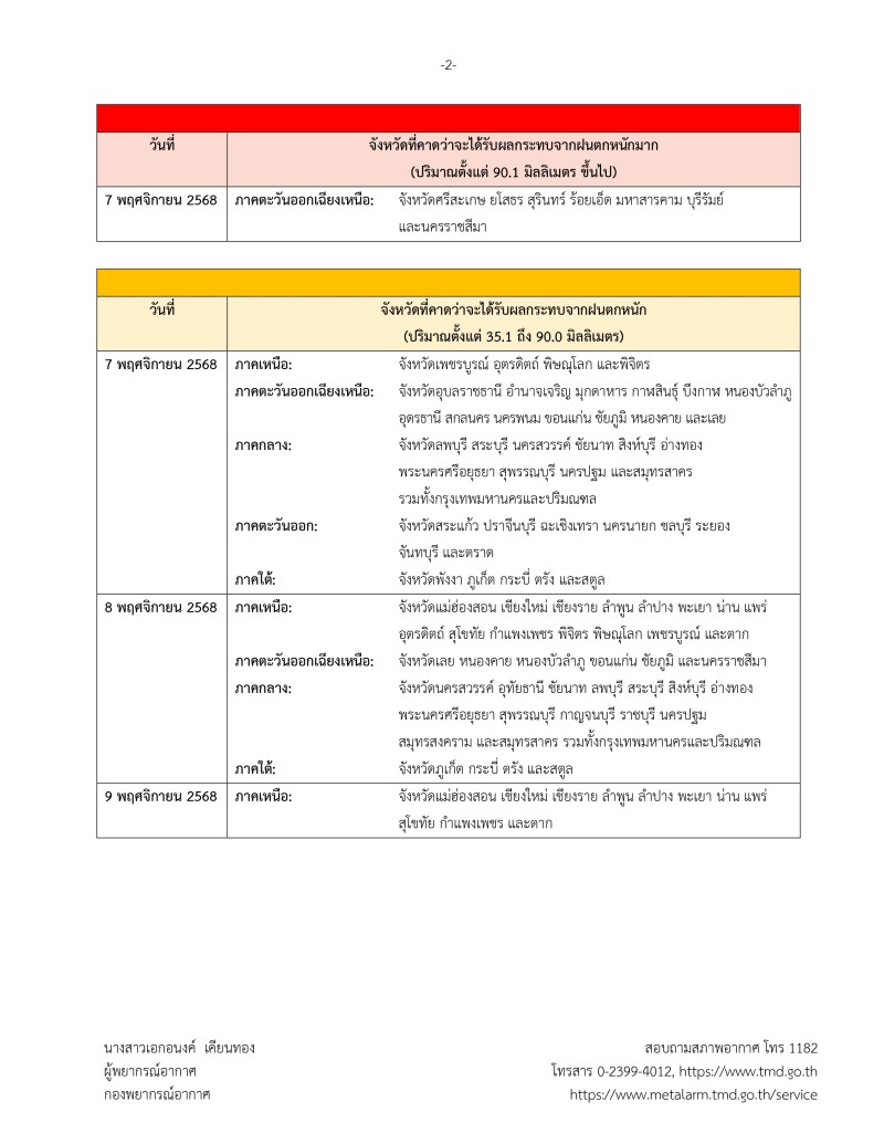 ประกาศ ณ วันที่ 7 พฤศจิกายน พ.ศ. 2568 เวลา 12.00 น. กรมอุตุนิยมวิทยาจะออกประกาศฉบับต่อไปในวันที่ 7 พฤศจิกายน พ.ศ. 2568 เวลา 15.00 น.