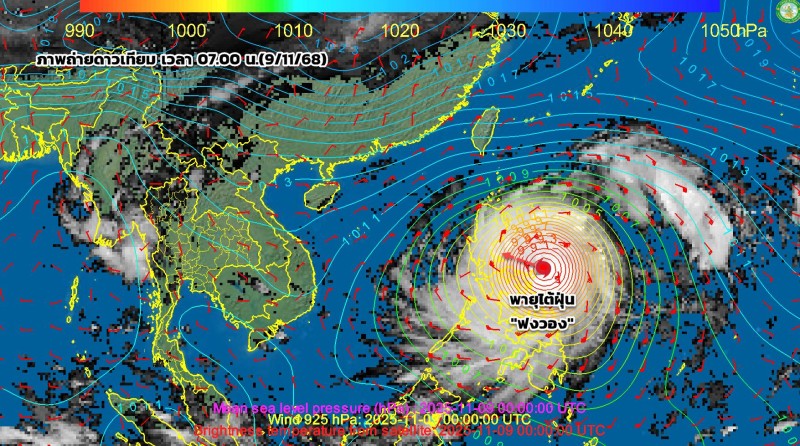วันที่ 9 พฤศจิกายน 2568 กรมอุตุนิยมวิทยา รายงาน อัปเดตเส้นทาง พายุไต้ฝุ่น "ฟงวอง(FUNG-WONG)"เช้าวันนี้ (9/11/68) : เวลา 07.00น. พายุนี้กำลังเคลื่อนตัวทางตะวันตกเฉียงเหนือ