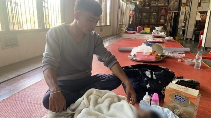 ขณะที่ พระอธิการปรัชญา จารุธัมโม เจ้าอาวาสวัด เปิดเผยว่า พี่ชายของนายทศพร ได้มาบวชเป็นพระลูกวัดของอาตมา ทราบว่าทศพรตกงานและเมียเพิ่งทิ้งไปหลังคลอดลูกจึงได้นำมาหาพระพี่ชาย อาตมารู้สึกเมตตาสงสารจึงได้ให้ที่พักชั่วคราวและอาหารที่บินฑบาตร พร้อมปัจจัยเล็กน้อยให้ซื้อนมให้ลูกกิน พร้อมตั้งชื่อว่า น้องใบบุญ