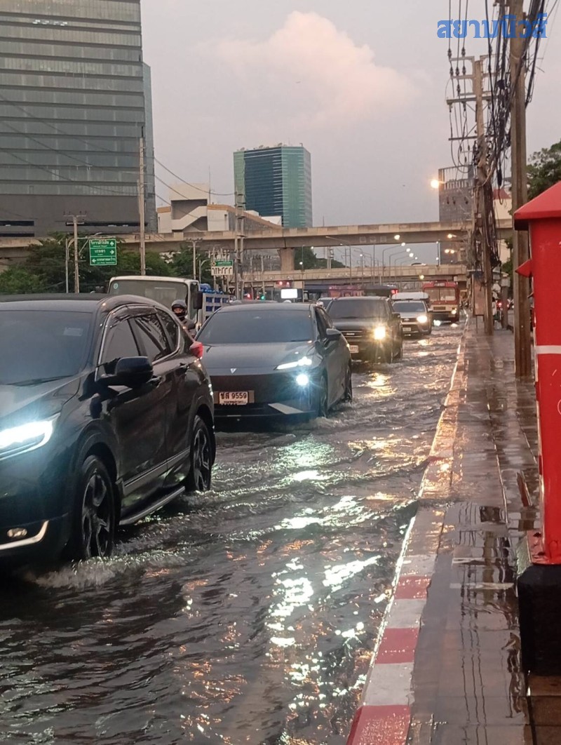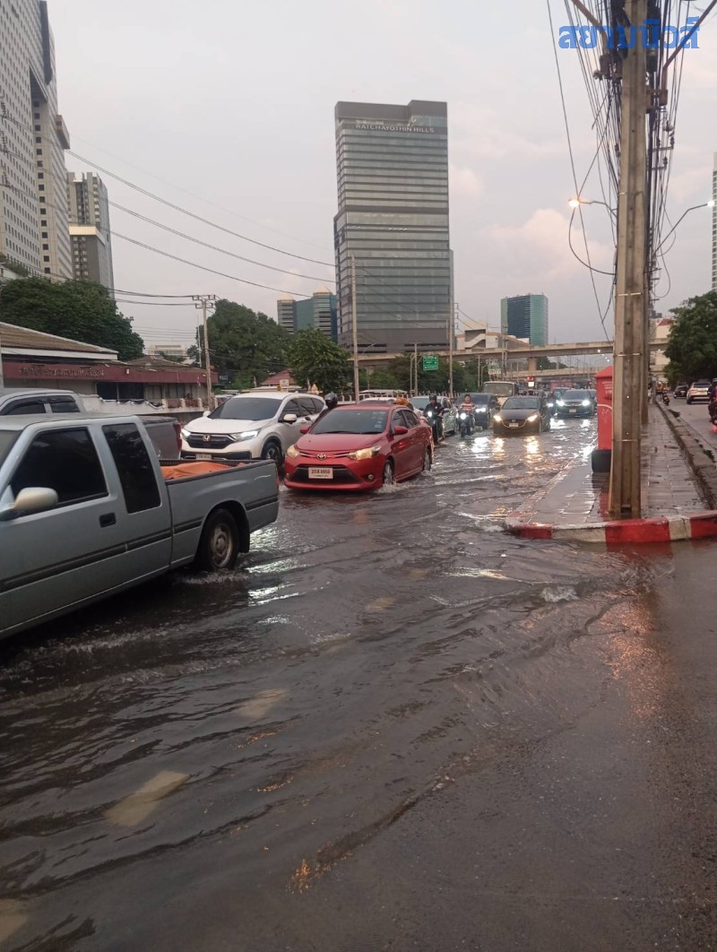 ถนนรัชดาภิเษก บริเวณหน้าศาลอาญารัชดา มีน้ำท่วมขังประมาณ 20 เซนติเมตร ขอให้ประชาชนใช้ความระมัดระวังในการสัญจรผ่านเส้นทางดังกล่าว
