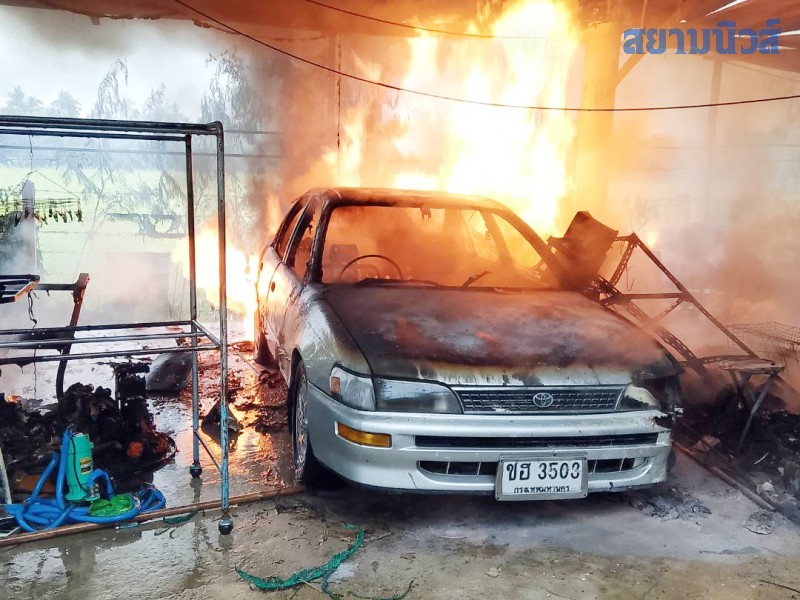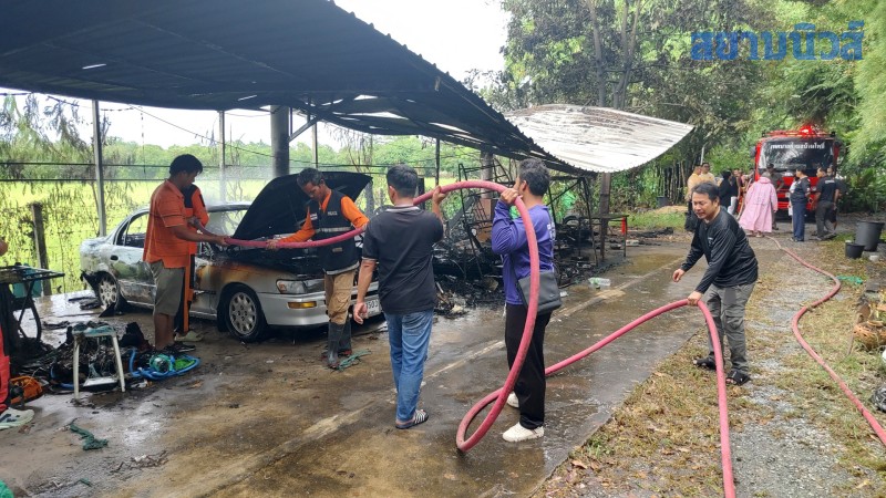 เมื่อไปถึงพบชาวบ้านกำลังช่วยกันใช้ถังน้ำตักน้ำสาดเพื่อดับไฟ ที่กำลังลุกไหม้รถยนต์เก๋ง รถจักรยานยนต์ จักรยานสองล้อ และทรัพย์สินอื่นอีกหลายรายการ ที่อยู่ภายในโรงรถ เจ้าหน้าที่ดับเพลิงจึงเร่งฉีดน้ำเพื่อดับไฟที่กำลังลุกไหม้ ใช้เวลา กว่า 30 นาทีจึงสามารถควบคุมเพลิงเอาไว้ได้