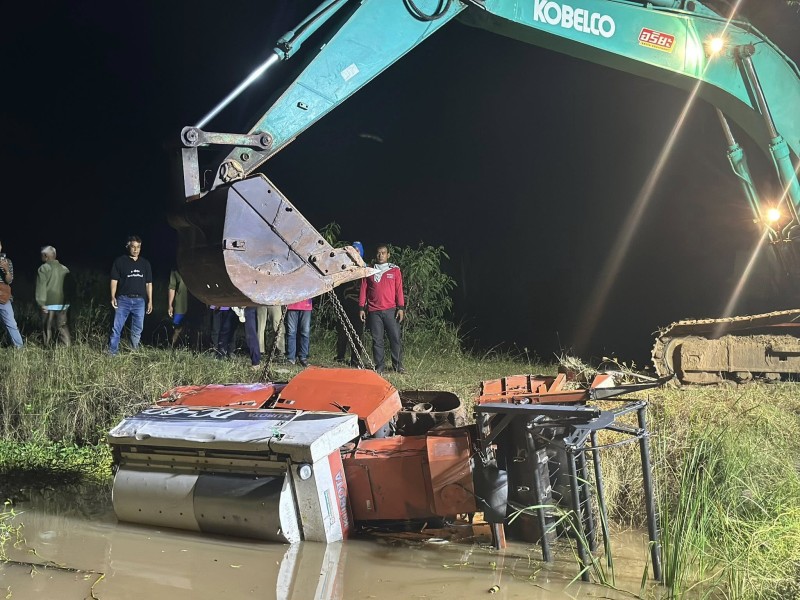 วานนี้ (18 พ.ย. 2568) เจ้าหน้าที่ตำรวจ สภ.บัวใหญ่ ได้รับแจ้งเกิดอุบัติเหตุรถเกี่ยวข้าวพลิกคว่ำตกสระน้ำ ทับคนขับเสียชีวิตเหตุเกิดบ้านบุเสมา–บ้านเสมาทอง ตำบลหนองแจ้งใหญ่ อ.บัวใหญ่ จ.นครราชสีมา หลังรับแจ้ง จึงรุดไปตรวจสอบพร้อม หน่วยกู้ภัยบัวใหญ่