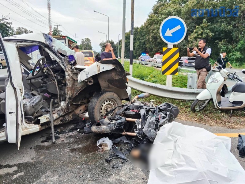 ที่เกิดเหตุ พบรถจักรยานยนต์ Honda รุ่น CBR650R สีดำหมายเลขทะเบียน 1กร 9640 พระนครศรีอยุธยา สภาพด้านหน้าพังเสียหายยับเยิน ใกล้กันพบรถยนต์กระบะยี่ห้อ Isuzu รุ่น TFR สีขาว หมายเลขทะเบียน กก 4672 สมุทรสาคร สภาพประตูด้านข้างฝั่งคนขับพังและยุบไปถึงที่นั่งคนขับ