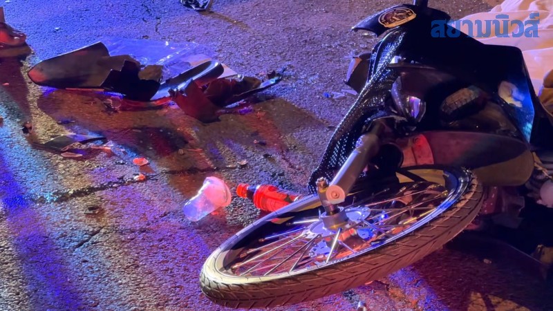 ที่เกิดเหตุมีชาวบ้านยืนมุงดูเหตุการณ์จำนวนมาก บนถนนฝั่งขาเข้าตัวตำบลพบรถจักรยานยนต์ ยี่ห้อ ฮอนด้า เวฟ สีดำ สภาพหน้ารถพังยับจากแรงพุ่งชน ชิ้นส่วนรถและขวดน้ำหวานกระจัดกระจายเต็มพื้นถนน ใกล้กันพบร่างชายชาวเมียนมา อายุประมาณ 21 ปี นอนเสียชีวิตคาที่