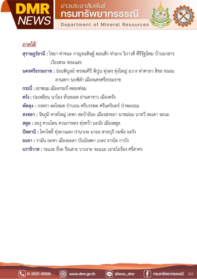 สอบถามข้อมูลเพิ่มเติมได้ที่ ศูนย์ปฏิบัติการธรณีพิบัติภัย กรมทรัพยากรธรณี โทร. 02 621 9701