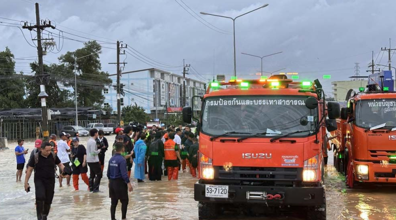 เมื่อเวลา 17.17 น. วันที่ 22 พฤศจิกายน 2568 นายอนุทิน ชาญวีรกูล นายกรัฐมนตรีและรัฐมนตรีว่าการกระทรวงมหาดไทย พร้อมด้วยนางสาวธนนนท์ นิรามิษ ภริยา และคณะ ลงพื้นที่ตรวจเยี่ยมสถานการณ์น้ำท่วมในอำเภอหาดใหญ่ จังหวัดสงขลา โดยใช้รถยกสูงของกรมป้องกันและบรรเทาสาธารณภัย (ปภ.) เดินทางจากท่าอากาศยานนานาชาติหาดใหญ่ไปยังพื้นที่ได้รับผลกระทบบริเวณสี่แยกโรงปูน (บิ๊กซี)