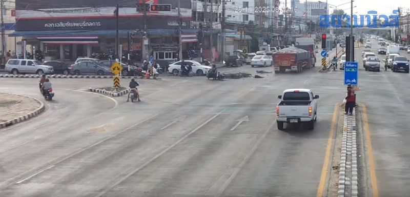 เมื่อเวลา 09.30 น. วันที่ 25 พ.ย. 2568 ร.ต.ท.ชาตรี ทรัพย์นิยม รอง สว.(สอบสวน) สภ.เมืองลพบุรี ได้รับแจ้งเกิดอุบัติเหตุรถยนต์บรรทุก เฉี่ยวชนกับรถจักรยานยนต์ที่สี่แยกเอราวัณ ต.ทะเลชุบศร อ.เมือง จ.ลพบุรี มีผู้เสียชีวิต และได้รับบาดเจ็บสาหัส หลังรับแจ้ง จึงได้ประสานรถกู้ชีพ รพ.พระนารายณ์มหาราช และอาสาสมัครมูลนิธิร่วมกตัญญู เดินทางไปตรวจสอบ