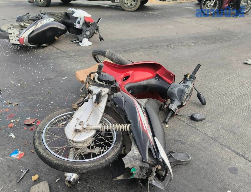 ที่เกิดเหตุ บริเวณกลางสี่แยก พบรกถจักรยานยนต์ยี่ห้อ ซูซูกิ สีแดง ทะเบียน ขฉต-873 ลพบุรี และรถจักรยานยนต์ยี่ห้อ ฮอนด้า คลิ๊กสีขาวดำ หมายเลขทะเบียน ขคษ-511 ลพบุรี ในสภาพพังยับ ใกล้กันพบผู้ได้รับบาดเจ็บสาหัสจำนวน 2 ราย และผู้เสียชีวิตเป็นชายในสภาพแหลกเหลว ตัวขาดเป็นสองท่อน ทราบชื่อคือนายสำราญ อายุ 69 ปี ชาว ต.เขาพระงาม อ.เมือง จ.ลพบุรี (คนขี่จยย. ซูซูกิ) จากนั้น เจ้าหน้าที่ได้เร่งทำการช่วยเหลือนำผู้บาดเจ็บส่ง รพ. แต่ผู้บาดเจ็บสาหัสทนพิษบาดแผลไม่ไหว ได้เสียชีวิตในเวลาต่อมา ทราบชื่อนางอุไร อายุ 65 ปี (คนซ้อนท้ายจยย. ซูซูกิ) ซึ่งทั้ง 2 เป็นสามีภรรยากัน ส่วนผู้บาดเจ็บอีกรายคือ นางรัชนก อายุ 63 ปี