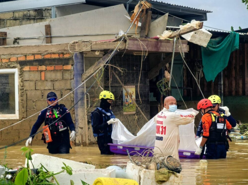 เมื่อเวลา 11.00 น. วันที่ 28 พฤศจิกายน เจ้าหน้าที่กู้ภัยมูลนิธิฮุก 31 นครราชสีมา ร่วมกับหน่วยกู้ภัยฉะเชิงเทราจุดบางคล้า ได้เข้าดำเนินการเคลื่อนย้ายร่างผู้เสียชีวิต เพศชาย ไม่ทราบชื่อ อายุประมาณ 25-40 ปี จากพื้นที่น้ำท่วมในชุมชนสะพานดำ ต.คลองแห อ.หาดใหญ่ จ.สงขลา