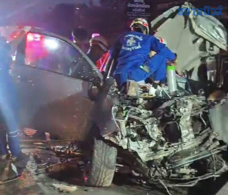 ห่างกันพบรถยนต์ปิคอัพยี่ห้อโตโยต้า สีเทา ทะเบียน ผก2365 พระนครศรีอยุธยา จอดอยู่บนถนนนางรอง-ชำนิ ได้รับความเสียหายด้านหน้าพังยับเยินสภาพหลังคาเปิดออก พบร่างนายกิตติธัช นกหงษ์ อายุ 29 ปี ชาว ต.นาวังหิน อ.พนัสนิคม จ.ชลบุรี ติดอยู่ภายในรถในตำแหน่งผู้โดยสารข้างตำแหน่งคนขับเสียชีวิต