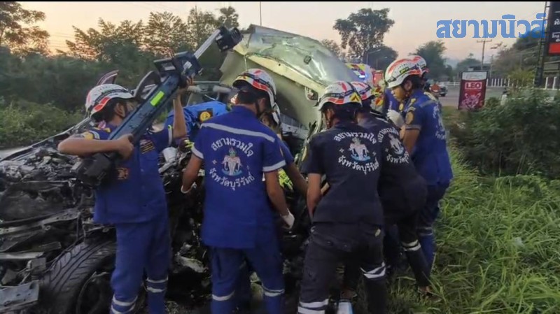 วันที่ 3 ธ.ค. 2568 เวลาประมาณ 06.00 น.พ.ต.ท.กรณ์พงษ์ มงคลธนสุพัฒน์ สารวัตร(สอบสวน) สภ.นางรอง อ.นางรอง จ.บุรีรัมย์ ได้รับแจ้งมีเหตุรถชนกัน บนถนนนางรอง-ชำนิ บริเวณหน้าร้านเอกเขนก (175) ต.นางรอง อ.นางรอง จ.บุรีรัมย์ คาดมีผู้เสียชีวิต จึงรุดไปตรวจสอบพร้อมหน่วยกู้ภัยสยามรวมใจปู่อินทร์