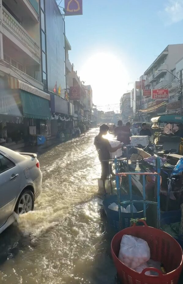 ฝั่งพระสมุทรเจดีย์ น้ำท่วมสูงบริเวณ ถนนสุขสวัสดิ์ ด้านข้าง โรงพยาบาลพระสมุทรเจดีย์, วงเวียนหอนาฬิกาพระสมุทรเจดีย์, ถนนคลองสรรพสามิตร, และ วัดเอี่ยมประชามิตร สถานการณ์น้ำท่วมสูงในหลายพื้นที่ได้ส่งผลกระทบต่อการสัญจรของประชาชนในจังหวัดสมุทรปราการอย่างหนัก ขอให้ผู้ใช้รถใช้ถนนเพิ่มความระมัดระวังและติดตามข่าวสารอย่างใกล้ชิด
