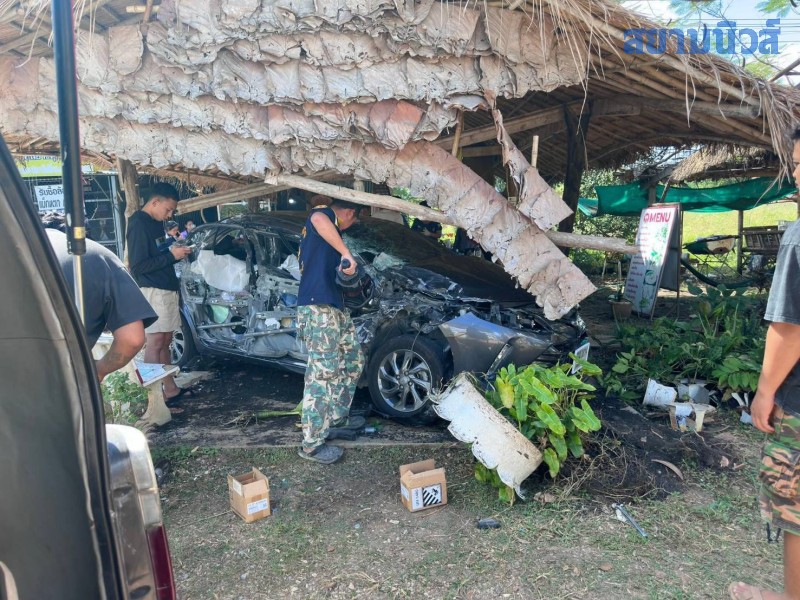 จุดเกิดเหตุพบรถเก๋งโตโยต้า สีเทาดำ ทะเบียน กรุงเทพฯ สภาพพังเสียหายยับเยิน หลังพุ่งชนเข้ากับร้านอาหารตามสั่งริมถนนอย่างจัง ภายในซากรถเก๋ง เจ้าหน้าที่พบผู้เสียชีวิตติดอยู่ 2 ราย เจ้าหน้าที่กู้ภัยต้องใช้เครื่องตัดถ่างนำร่างออกมา ทราบชื่อผู้เสียชีวิตคือ น.ส.นันทชพร อายุ 26 ปี และ นายอนุวัฒน์ อายุ 54 ปี