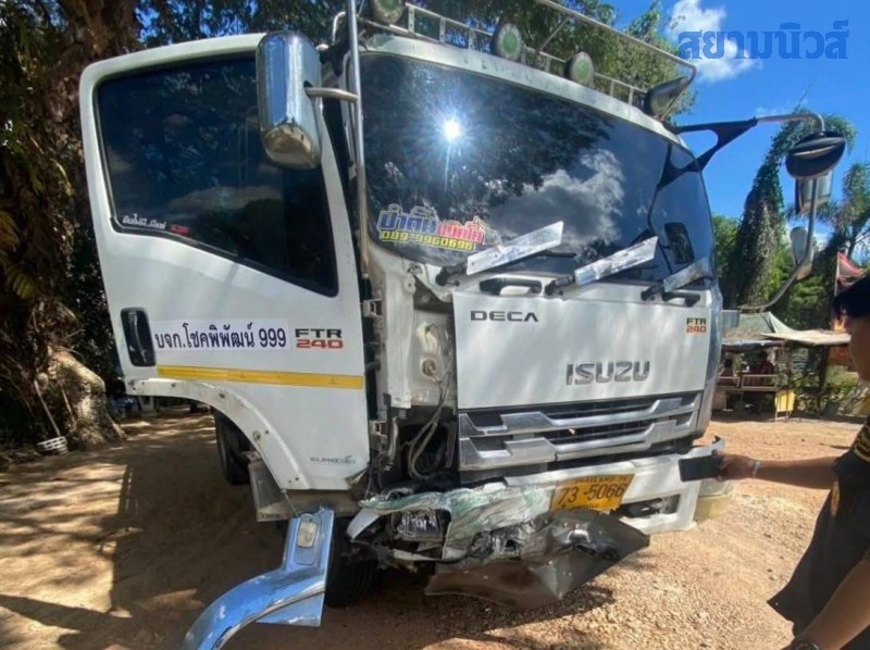 ใกล้กันพบรถคู่กรณีคือ รถบรรทุก 6 ล้อ ทะเบียน นครปฐม สภาพด้านหน้าพังเสียหายบางส่วน โดยคนขับรถบรรทุกได้ยืนรอให้การกับเจ้าหน้าที่ตำรวจในที่เกิดเหตุ