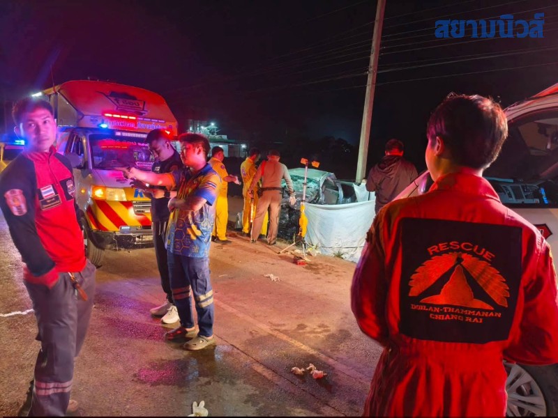 เมื่อเวลา 20.40 น. วันที่ 9 ธ.ค. 2568 ที่ผ่านมา ผู้สื่อข่าวรายงานว่า ร.ต.ท.ธรรมราช อุ่นเรือน รอง สว.(สอบสวน) สภ.เมืองเชียงราย ได้รับแจ้งเหตุรถยนต์กระบะ 2 คัน ชนประสานงาอย่างรุนแรงบนถนนเชียงราย-เทิง พื้นที่บ้านร่องเบ้อ ม.9 ต.ห้วยสัก อ.เมืองเชียงราย จ.เชียงราย มีผู้บาดเจ็บและติดอยู่ภายในรถเป็นจำนวนมาก หลังรับแจ้ง จึงรีบรุดไปตรวจสอบ