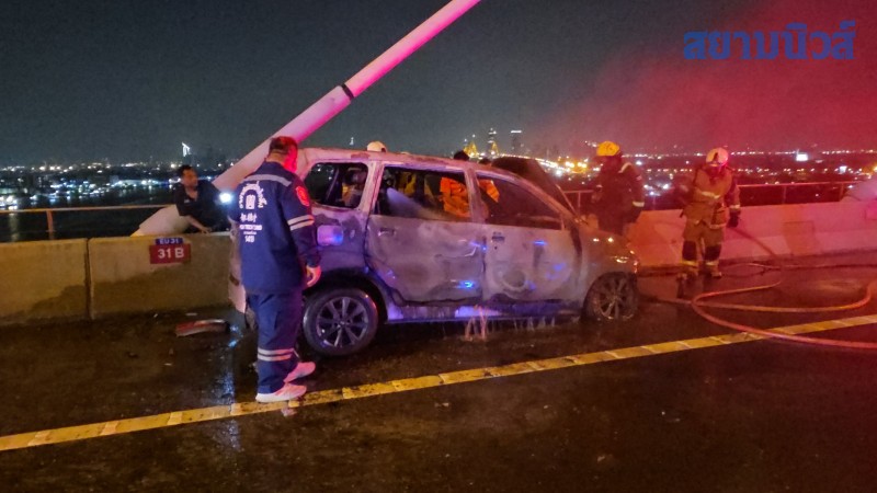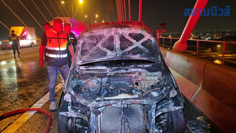 นายชาญ เจ้าของรถ ได้เล่าว่า วันนี้ตนเองและภรรยาได้ซื้อรถยนต์นั่งซึ่งเป็นมือสองเป็นรถยนต์ 7 ที่นั่งซื้อมาจากที่จังหวัดสุพรรณบุรี และได้กำลังขับรถกลับบ้านย่านแพรกษา จังหวัดสมุทรปราการ ก่อนเกิดเหตุกลางสะพานได้มีกลุ่มควันพวยพุ่งออกจากห้องเครื่องจากนั้นไฟก็ได้ลุกไหม้เสียหายทั้งคัน ซึ่งรถคันดังกล่าวได้ซื้อวันนี้และไฟได้ลุกไหม้วันนี้เช่นกัน